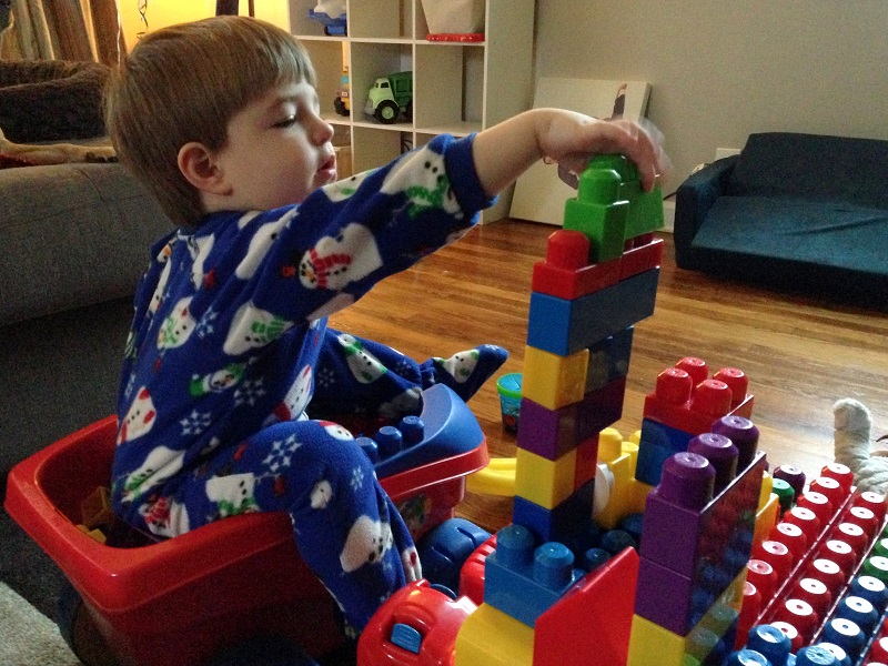- Having his diaper changed – mostly because he doesn’t want to stop playing. He plays really well on his own any time his diaper is full of poop…I think because he doesn’t want to draw our attention to it.