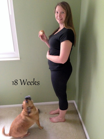For comparison sake, here’s 18 weeks this time versus 18 weeks last time (2nd pic). Not a huge difference, but definitely thicker through the stomach and butt this time. Note that I’ve definitely popped out much further in the last 3 weeks – we just haven’t taken another new picture.