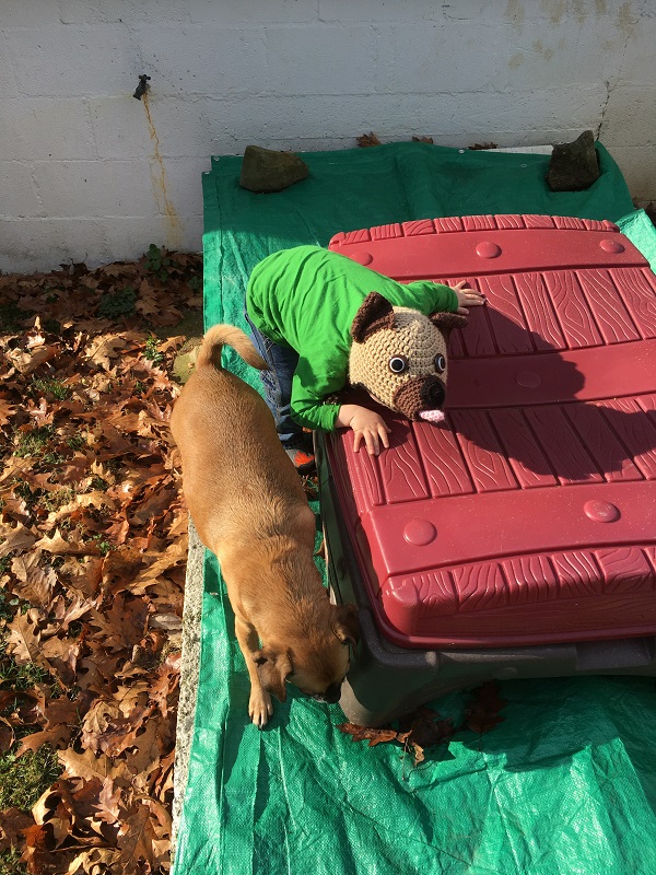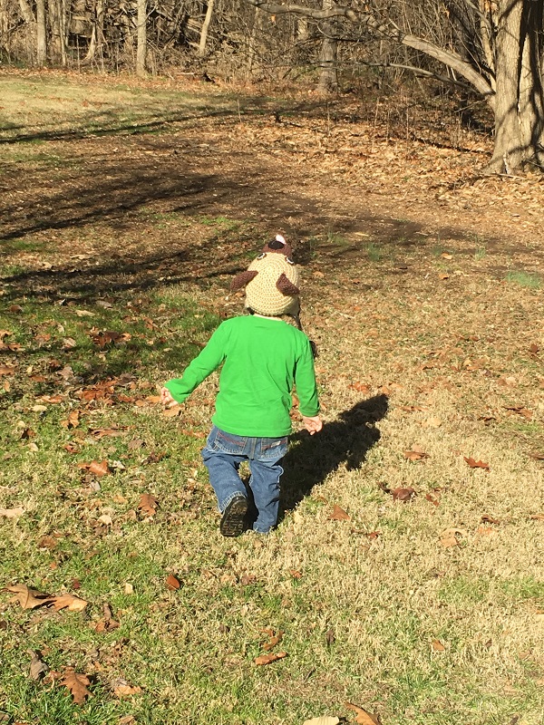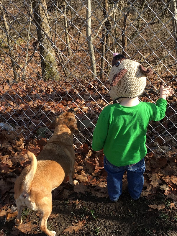 It was warm enough that Jenson didn’t need a hat, but he doesn’t really go outside without a hat and he wanted to wear his Boof hat instead of his summer hat.