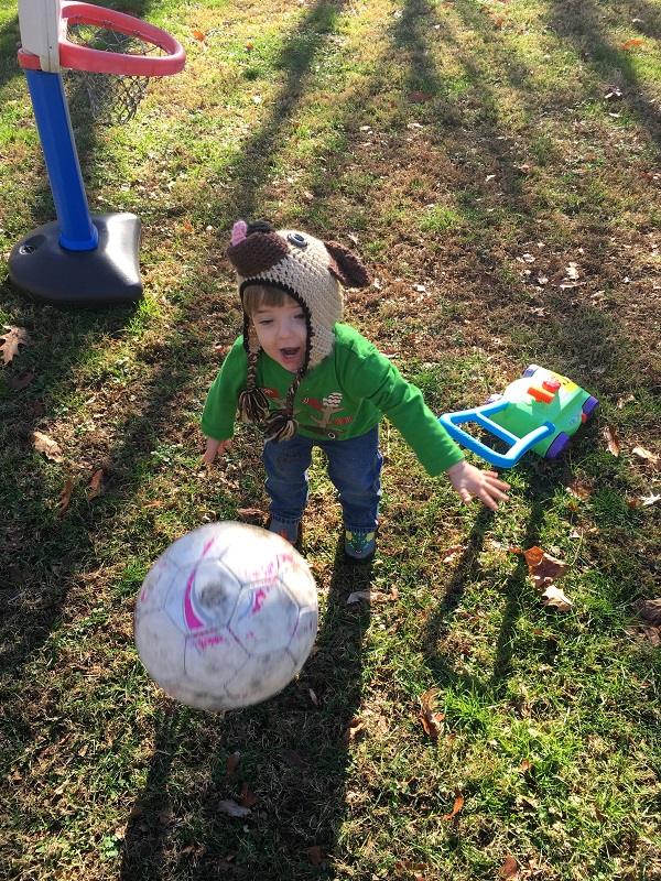 We ran around the yard (you should have seen how quick and nimble I was at 39 weeks pregnant), and threw the soccer ball back and forth.