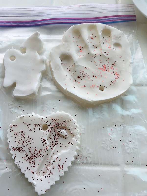 I made some banana bread in jars – now my favorite way to make it. Jenson and I made some ornaments earlier in the day with cornstarch and baking powder. They developed small cracks as they dried, but hopefully they’ll hold up in the long run.