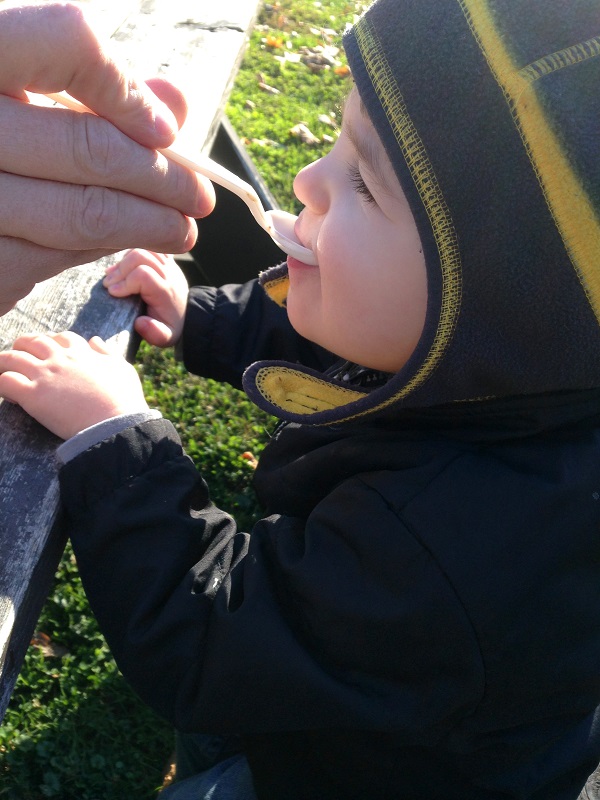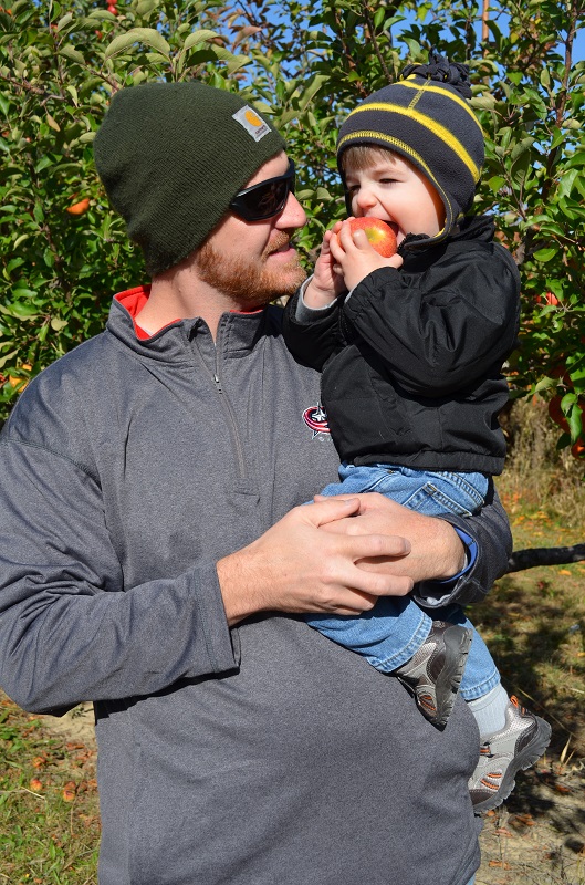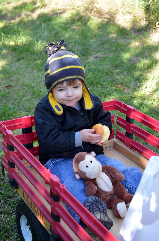 Jenson liked picking some apples out of the trees, but he preferred to sit in the wagon and eat some (which they encouraged). I think he ate most of 2.5 apples while we were there!