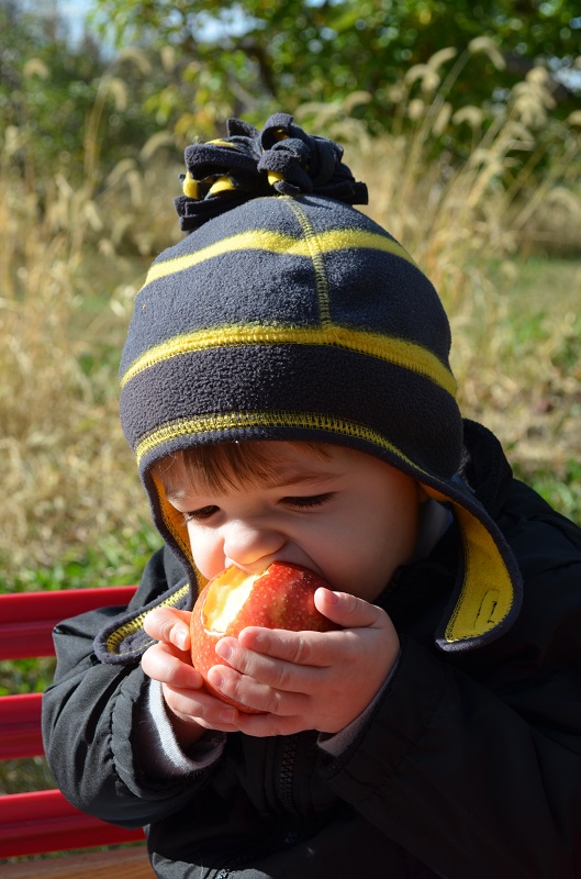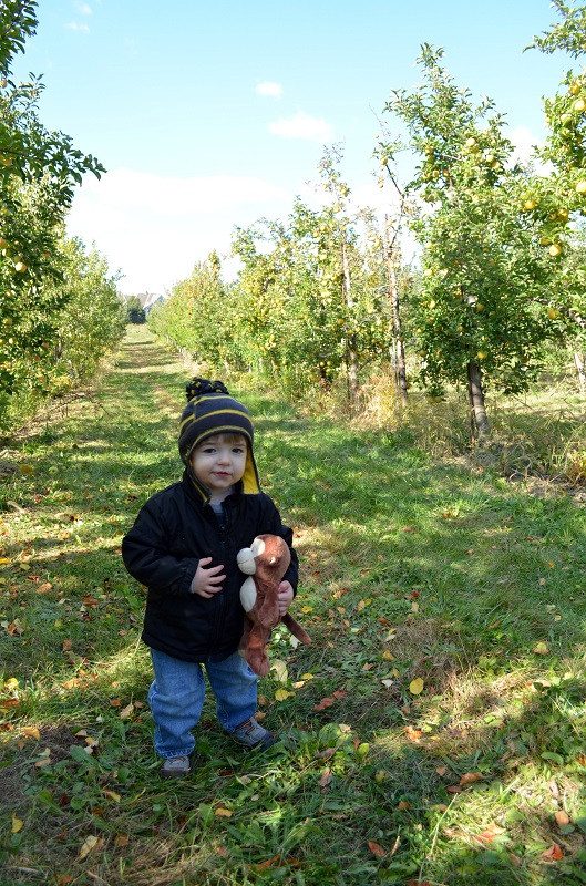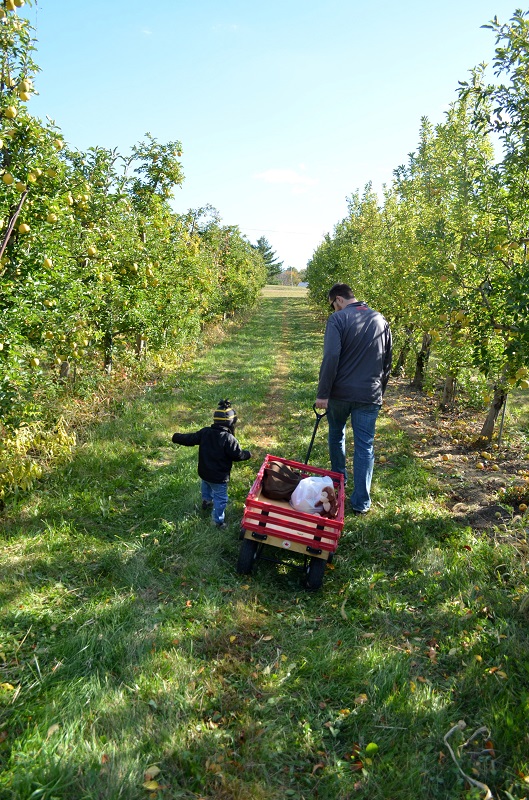 One sunny Sunday afternoon, we decided to go pick some apples after nap. We always go to Lynd’s Fruit Farm, but not until the end of the month because I like the Goldrush apples. I did a little research the night before and found that Branstool Orchards was only about 20 minutes away and they had a large variety of apples. Really, I hadn’t decided between two orchards that are off of the same road, and when we got to the intersection where we had to decide, I just said, turn right. It was a fantastic orchard – tons of varieties and really pretty property. They had wagons to pull your haul (or kids) through the aisles whereas at Lynd’s, you just park your car in the aisles where you want to pick because they have so many rows of each variety, that you move your car if you want several varieties. Branstool had 2-4 rows of each varieties, so it was easy to get some of each. I think we settled on Pinova as our favorite variety of Branstool.