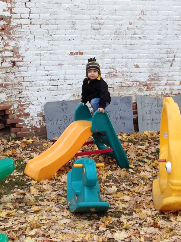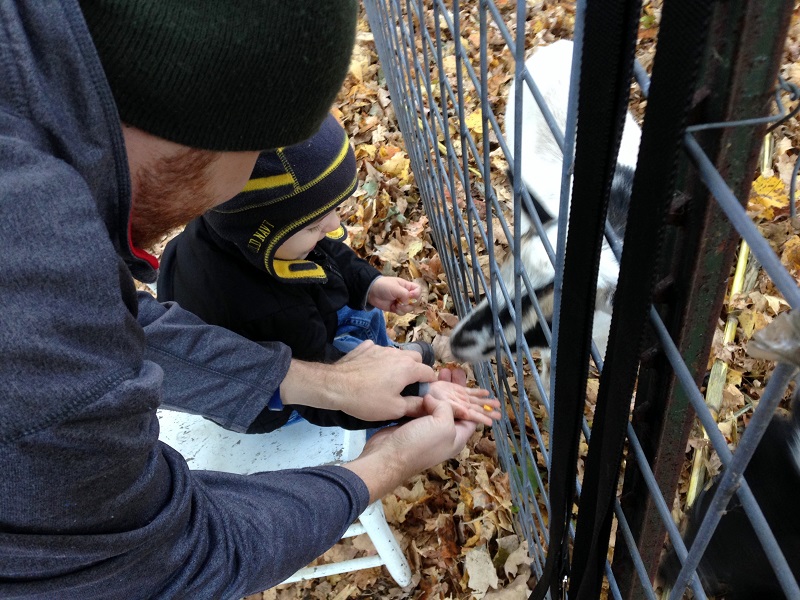 While we were out, we decided to kill a little more time and go back to Dupler’s Pumpkin Land since Jenson loved it so much and I told him we’d bring Daddy there. He had a blast feeding the goats some corn, talking to the bunnies, and playing of the Little Tykes toys.