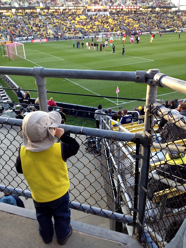 We took Jenson to a Columbus Crew game while the weather was still going to be nice enough and it was a 5 p.m. game. He was really excited to go – he likes watching soccer on TV, and we told him we’d probably see (his friend) Brady there.