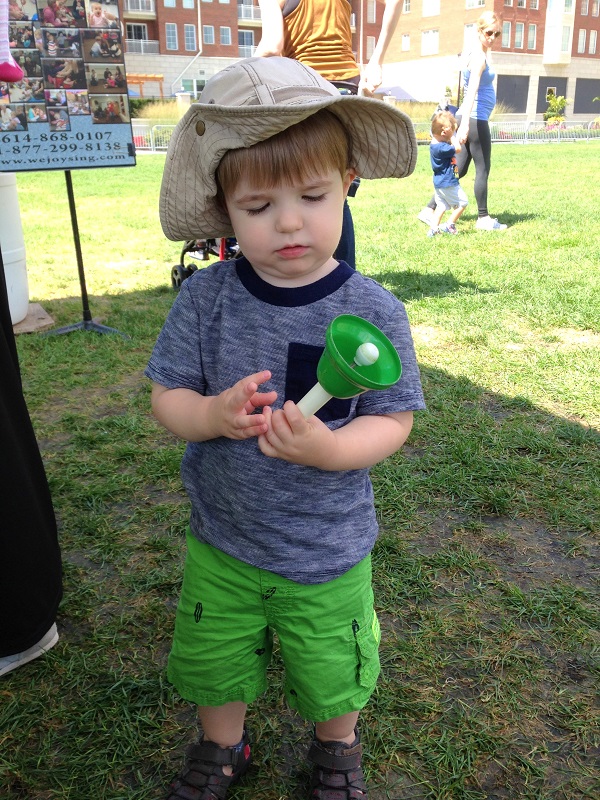 Jenson and I headed downtown for the last Commons for Kids event of the season at the Columbus Commons. We went into the Supreme Court first to visit my former co-workers. Half of them ended up being off that day, but they hadn’t seen him since right before I resigned in April. While we were there, he kept saying something that sounded like “alligator” and I couldn’t figure it out. He started saying it within the first 5 minutes that we were in the office, and he kept pointing up front and saying it. I thought maybe he saw a random drawing of an alligator in someone’s cube, but that seemed really random. Finally when we went to leave the office and headed towards the elevators….he pointed and said it again…and duh – it clicked with me. So elegator = elevator. Noted.