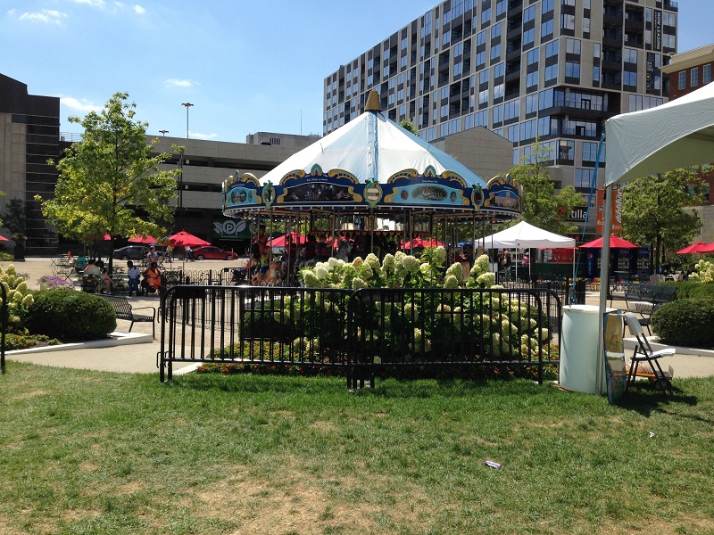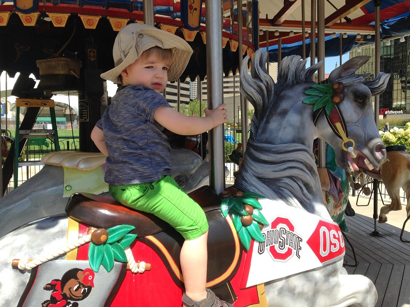 We headed to the Commons, but there was only about 45 minutes left. It was enough time to ride the free carousel a couple of times – he LOVED it, play with some musical equipment, and some big foam building blocks. The rest of the exhibits were closing up, but he was getting super sleepy anyway. He ate the lunch I packed for him before we rode the carousel one last time, and we headed to the car. I knew he was going to crash within about 5 minutes, and I was hopeful he’d transfer into the house well, so I changed his diaper in the trunk while parked on Front Street. It worked out great because he DID transfer into the house and slept for almost 2 more hours! Nap win. He talked about the animals that he rode on the carousel for days (horses, elephants, giraffes). He didn’t actually ride all of the ones he was naming, but he saw them.