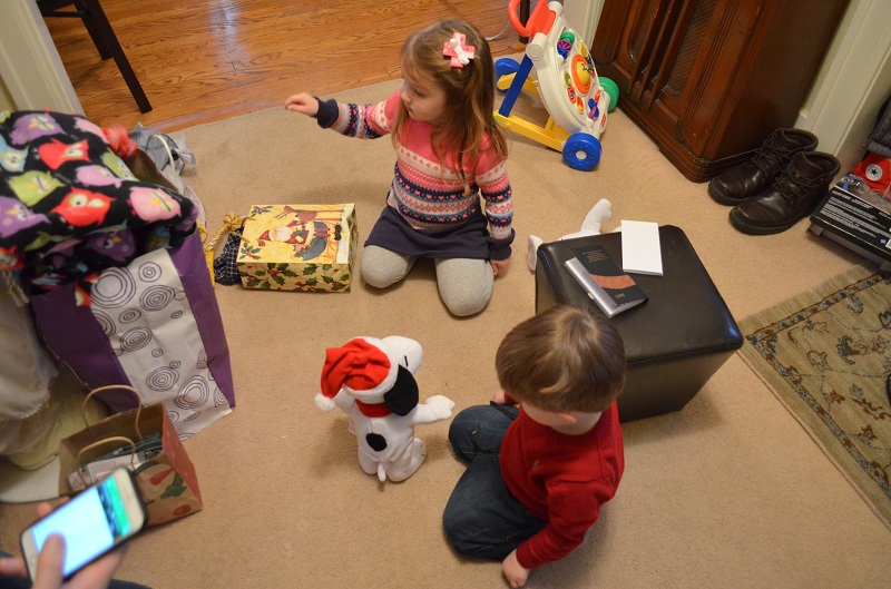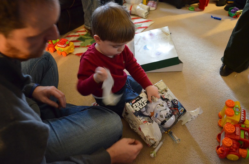 We had lots of good food and fun. Jenson got a TON of great gifts and had fun opening them. He plays with his new toys so much that we were able to put away a lot of his old toys and he hasn’t even noticed. He got clothes, books, Star Wars Potato Head, Hot Wheels, car-carrier truck (can’t think of what to call it), Squigz, a giant floor piano (like in Big), a doctor kit, and a bunch of other stuff. We had a Yankee Swap for the adults…I took home an Amazon gift card and selfie stick, and Lo got a box of food/snacks.