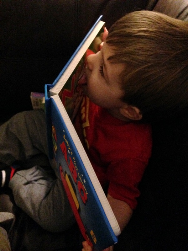 - “I lick it” There was a book with an ice cream cone in it, so he started licking it when we’d read that book. Then he kept going with other food. Oh well.