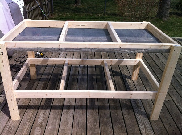On Sunday, Lo built me a salad table to grow lettuce and herbs. I’m so excited about it! Since the table is elevated, the bunnies can eat my salad fixings and it’s easy to maintain. Plus we can move it to partial shade once the weather gets too hot. A friend and her daughter came over for a little while too. Boof spent tons of time outside – she’s loving our backyard now. When we first got her, she wouldn’t go outside without us – now she can’t get enough of it. She gets so hot though, since our trees don’t have leaves yet. We went to Lowe’s so I could get lots of seeds to start the garden and salad table while the weather is nice. Next up is staining the deck and replacing the fence in the front!