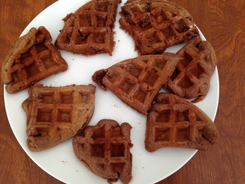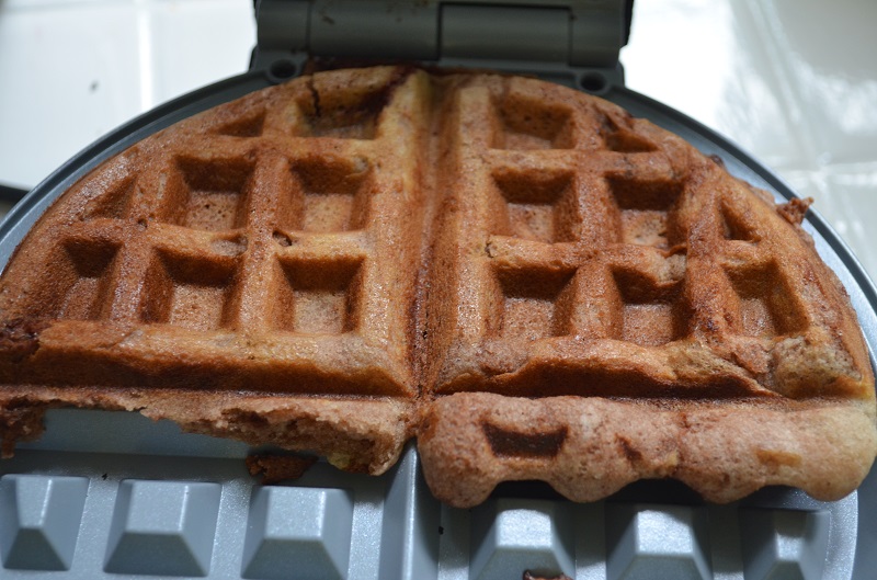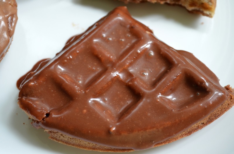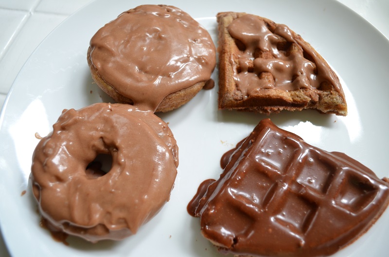 I had a box of Bloomfield Farms Gluten Free Baking Mix that I’ve been looking to use up, but I didn’t really know how to convert that into donuts. Luckily, someone else already did that for me, so I’m not going to reprint the recipe, since I didn’t really make any changes to it (other than stir in a little Hershey’s chocolate spread, which is like Nutella, but just chocolate). I used this recipe from I’m a Celiac and it turned out well (twice!). Chances are, you won’t have the same baking mix so my point isn’t the exact recipe, but that you can make probably ANY donut recipe/mix in a waffle maker. Cooking time is going to vary on how your waffle maker works – just eyeball it. Some of mine were a little wonky looking because I opened and closed the waffle maker because they were done.