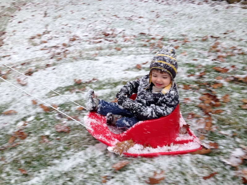 Jenson didn’t seem interested in playing IN the snow, but he was thrilled to be pulled around the yard in the sled.