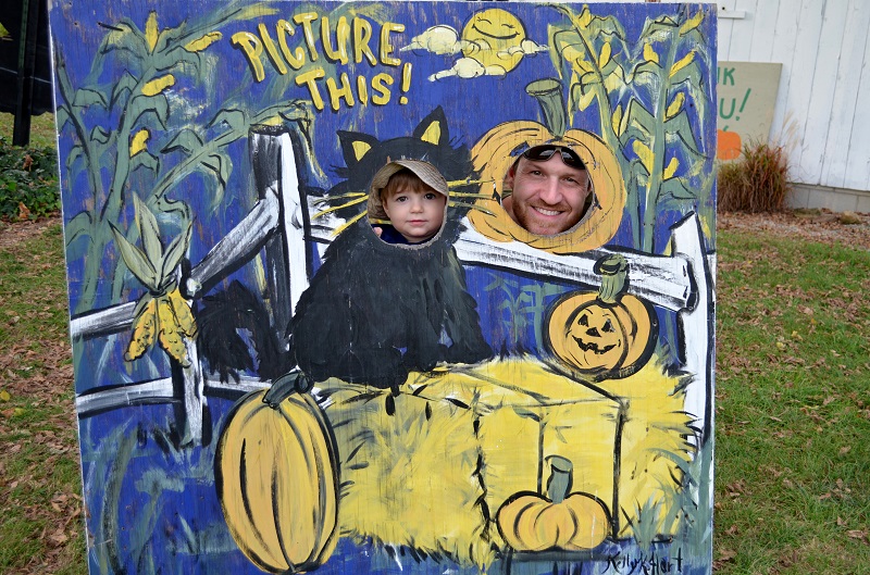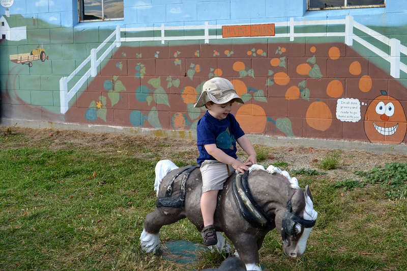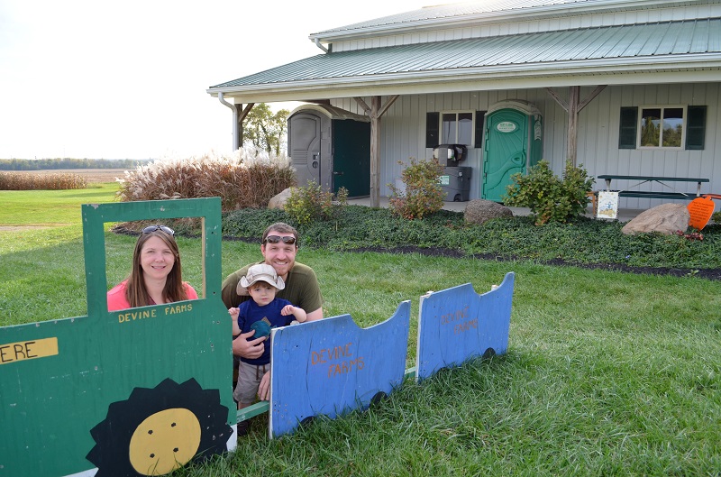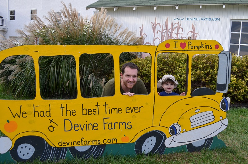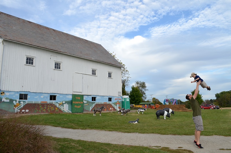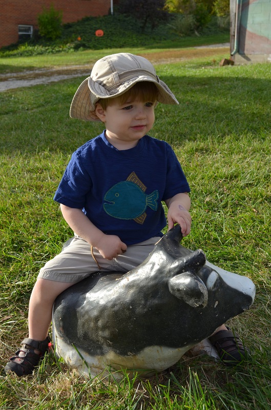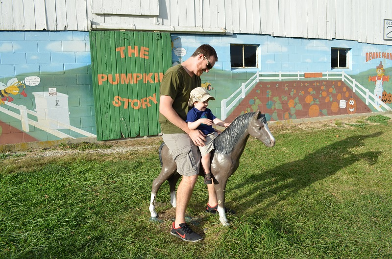 We met Lo about 20 minutes away at Devine Farms. They have an outdoor play area that is great for little kids for just $3 on the weekdays. They also have a corn maze, fun house, barrel train rides, and a bunch of other activities on the weekends that we’ll have to go back for, but we only had an hour before they closed, so the play area was perfect. He actually could have played there for a few hours and been happy. The play area had a bunch of Little Tykes-type toys for him to play on, hay bales, old tractors, tunnels, play kitchens, and an old bus painted like an ear of corn. There were also animal statues that he played on, cut-outs for pictures, and lots of pumpkins to pick from. It was so much fun. We’ll definitely be going back.
