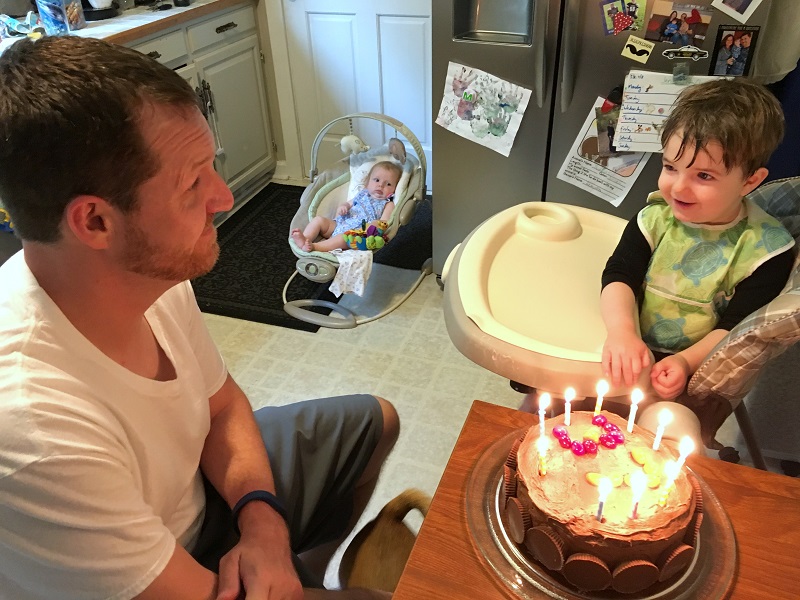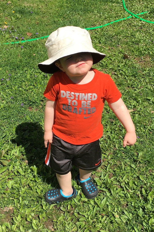 Word Up: He talks so much and is hilarious. We turned his carseat around after too many bouts of car sickness, and he talks constantly while we are driving (unless he’s reading). “I see a mailbox. I like mailboxes”. “There’s a truck. It’s black” It’s fantastic. He’s shy around other people at first, so I don’t know that most people realize how much he actually talks unless they’ve been around him for 4+ hours. He’s quite a chatterbox – especially at home or to himself in his crib when he’s trying to go to sleep. He loves singing songs still. He can count to 30 and knows all of his letters and likes to spell out words that he sees. He’ll “read” books to himself and make up the words based on the pictures, so that’s adorable. Some of the books he has the words memorized, so he actually knows all of the words. Of course, that means we can’t make up the words or skip things. He’ll even read to Marlowe on occasion. When we ask him a question, he starts with “Ummm…” like he’s really considering his options. He’ll also hold conversations with himself (especially in the crib). He’ll ask himself questions and answer them himself. I love it.