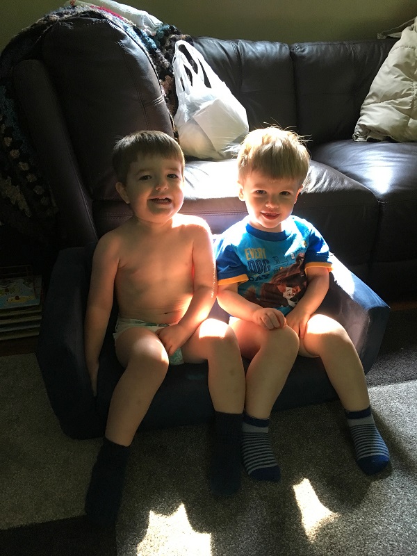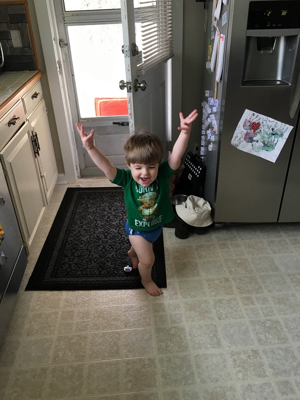 - Potty-training is nearly complete (spoiler alert – it now is). This is huge. It took a few months for sure, but he finally got the hang of it and he regularly wears underwear. It took a lot of naked time at home, which then morphed into wearing underpants at home (but diapers when we left the house) by late spring, and plenty of sticker and small cookie rewards. We then switched to pullups when we were leaving the house and tried to get him to use the bathroom when we were out, but he usually wasn’t willing. By mid-summer, he would keep his pull up dry while we were out of the house and he started leaving the house in underpants for short trips. He started going to the bathroom while we were out too. He never had an accident while we were out, and rarely at home – usually was busy playing and didn’t think about it until it was a little too late. But he was always able to stop himself and make it to the bathroom. He saved his #2’s for when he was wearing a diaper for nap or for night. We needed him to be mostly potty-trained before he started preschool (at least in pullups), so it was just in time! Which leads to….