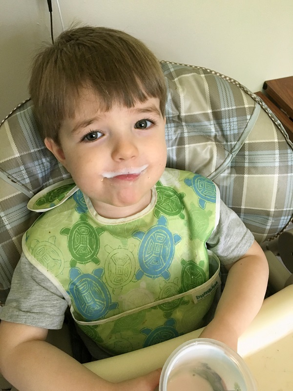 Eating: Not much change here…again – his list of food hasn’t grown any, except for the addition of chicken nuggets (sometimes). All fruit, plain yogurt, cereal, oatmeal, cheese, crackers, peanut butter, bread, applesauce, pouches, smoothies, waffles, mac and cheese, grilled cheese, and cheese pizza. He usually has some dry cereal in a cup while he watches a show or two in the morning. After that he oatmeal, a waffles, or toast, with yogurt and maybe fruit. Lunch is usually a sandwich (PBJ, grilled cheese), maybe a piece of cheese and/or a few pretzels, and fruit. Dinner is usually similar to lunch, unless we are eating one of the few things he’ll eat, which is rare. He honestly doesn’t snack much…but if so, usually crackers, pretzels, or fresh or dried fruit. I feel like its a constant battle to get him to eat enough (and the “right” things), and I’m trying to let go about that some. He’ll eat when he’s hungry I guess. Sometimes I get him to lick some sort of food that he doesn’t normally eat, and I count that as a win. I never thought I’d be excited that my kid ate a chicken nugget. He doesn’t fall asleep at lunch anymore…those days are over.