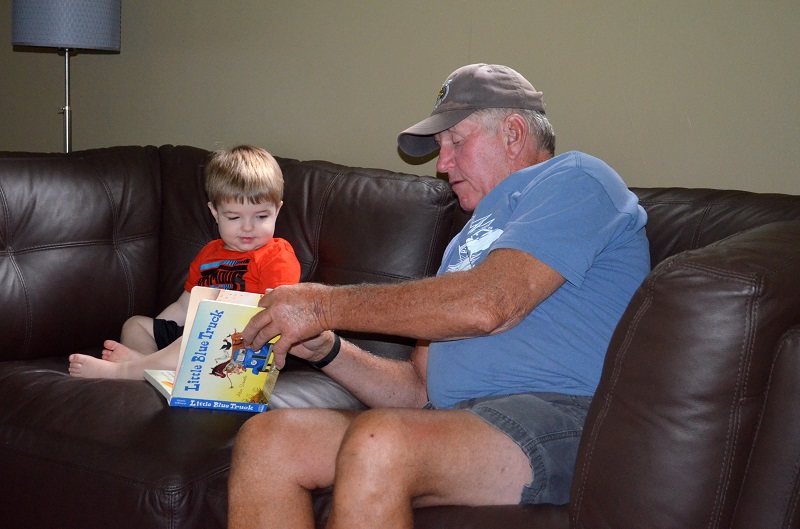 He’s still really shy around people for at least 30 minutes, but once he warms up, he’s talkative and asking everyone to read to him. He’s very persistent. It’s possible that this is the first time my dad read a kids’ book – I think it helped that it was about an old truck (Little Blue Truck).