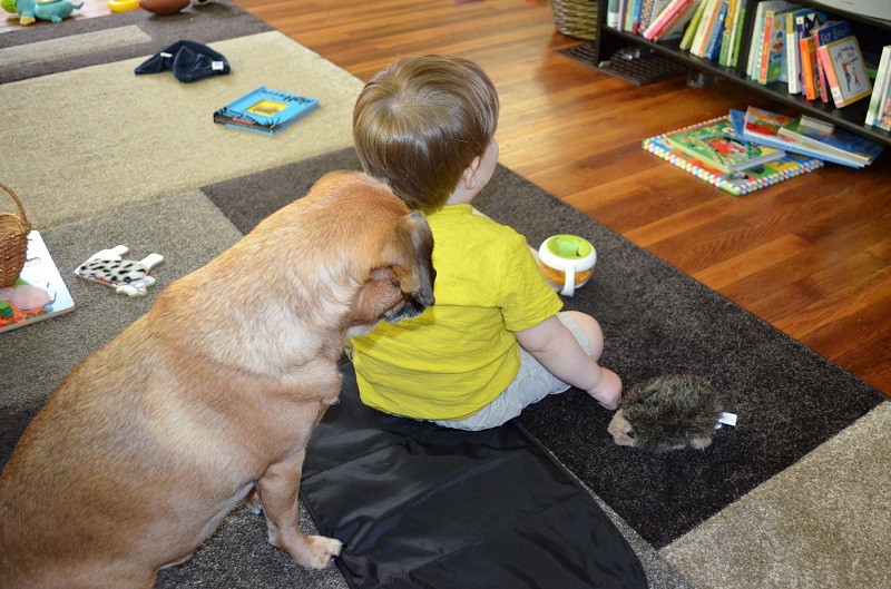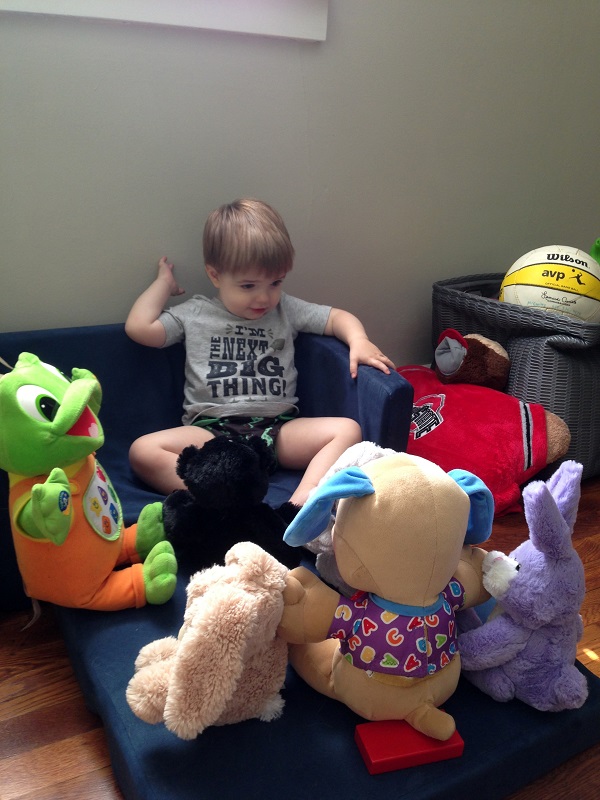 - Started to warm up with story time and will sit on the rug (without me) by the end of the session. Sometimes it’s not until literally after the last book has been read. We made a friend with a Mom and her son there. Ellis is a little older than Jenson and will help him (like if Jenson is too shy to put back the props that they were using and stuff). Jenson will sit by Ellis on the rug if I’m nearby.