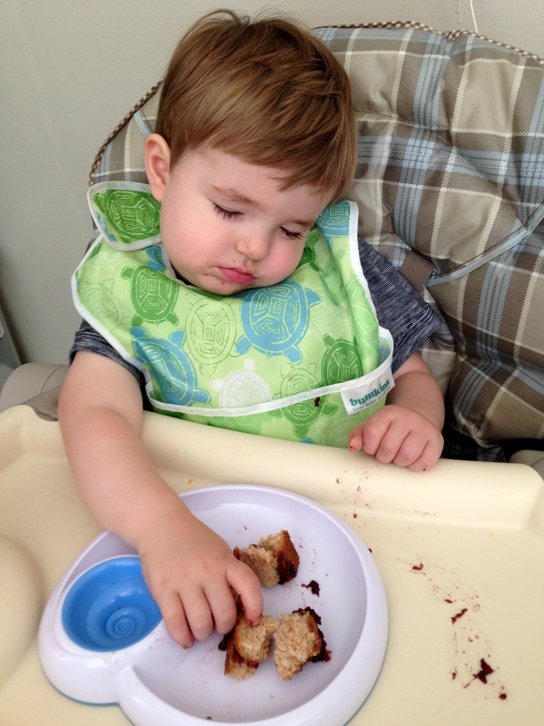 - Waking up from naps – he wakes up fine in the mornings, but just cries and is grumpy after nap unless it’s extra-long. He perks up if he gets to watch Elmo or Daniel Tiger and has a snack. Boof perks up too.