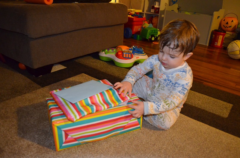 His birthday party wasn’t until the weekend after, and we had a low-key evening for his actual birthday.  We just went to Devine Farms to play after Lo got off work, and then headed home for dinner and presents.  We decided we’d save cake for the weekend since he didn’t know it was missing, and then we didn’t have to eat a cake by ourselves before the weekend.