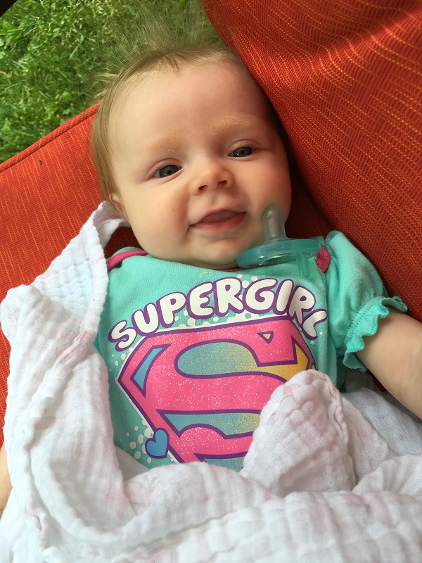 As for my “mom of the year” moment…around 2 am last night, after having nursed Marlowe 30 or so minutes before and replaced her pacifier approximately 300 30 times since I came to bed at midnight, she was still fussing. I was so tired and frustrated that I muttered “shut up”. To be clear, this is not something I’m okay with saying to my kids – especially once they are at the age to understand -she’s 4 months old, so I’m quite certain she doesn’t understand (plus she was technically sleeping). I doubt I’ve ever said it before, and I don’t intend to start, so right after it came out of my mouth I regretted it. I laid there and thought how ugly it felt to say that to a baby. She had mostly stopped fussing for the moment and I thought to myself, if she fusses again, I’ll pick her up. But I still reached over (in the rock-n-play by our bed) and felt her head. She was burning up. I picked her up and unfastened her swaddle – her whole body was hot. Duh…she was snotty and sneezy all day, of course it’s possible for her to have a fever. So downstairs we came, where I replaced her fleece swaddle with a light cotton sleeper, and checked her temperature – fearing that it was going to be 104 or something. It was 101.1, so I gave her Tylenol, and went to the couch with her to see if it would come down without further measures (cold cloths, etc). We both dozed for about an hour, and when I checked it again after 3 am, it was back down to 99.something, so I headed back upstairs so we could get some “real” sleep. She was fine when she woke today, albeit a little sneezy still. She got really fussy this afternoon and ran a slight fever, but a little tylenol and sitting on the swing while Jenson napped seemed to have helped that.