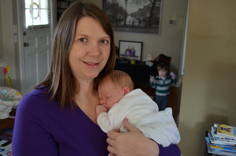 Her 2 week appointment was on January 18 and she was 8 lbs, 12 oz., so she surpassed her birth weight and I didn’t need to wake her anymore. Hurray! Lo went back to work on Tuesday, but I still had my mom and sister for help, luckily. His 3 weeks off flew by so fast! My sister and mom painted the bathroom that is connected to the nursery since Lo and I didn’t get to it. We still haven’t put the furniture or anything in her room (fail)…but she’s still in our room with us, so no biggie. Summer left that Thursday, and my mom left on Friday. I was sad when she left – it was time, but I was nervous about being home all day by myself with the kids the following week. It didn’t help that Lo and Jenson both got pretty sick with ear and throat infections, so Lo was only able to help with Jenson as much as he could. I was tired and up for 1-3 feeding each night for an hour each, and I was feeling pretty overwhelmed. Marlowe cooperated by being pretty content though.