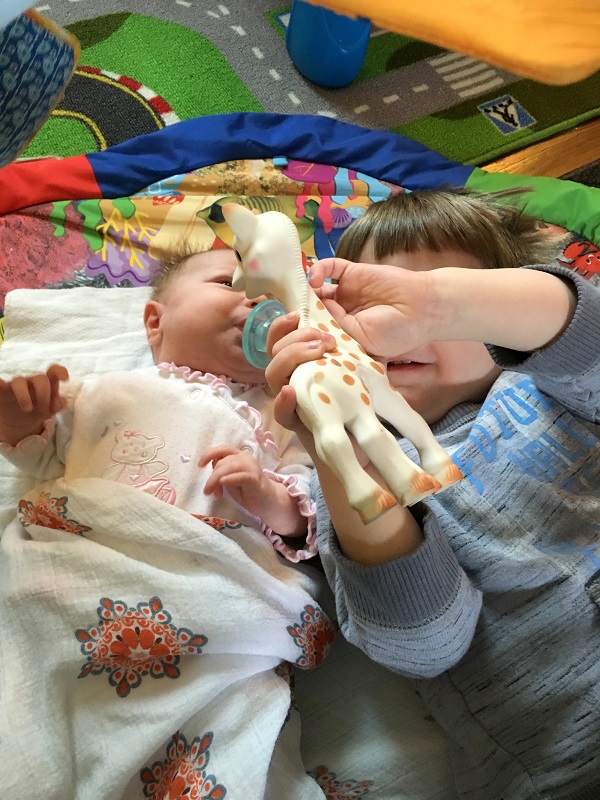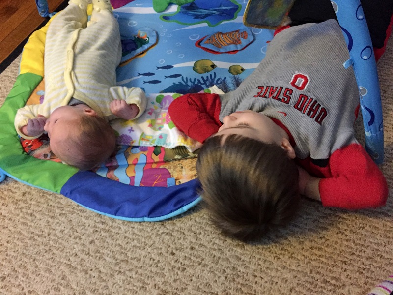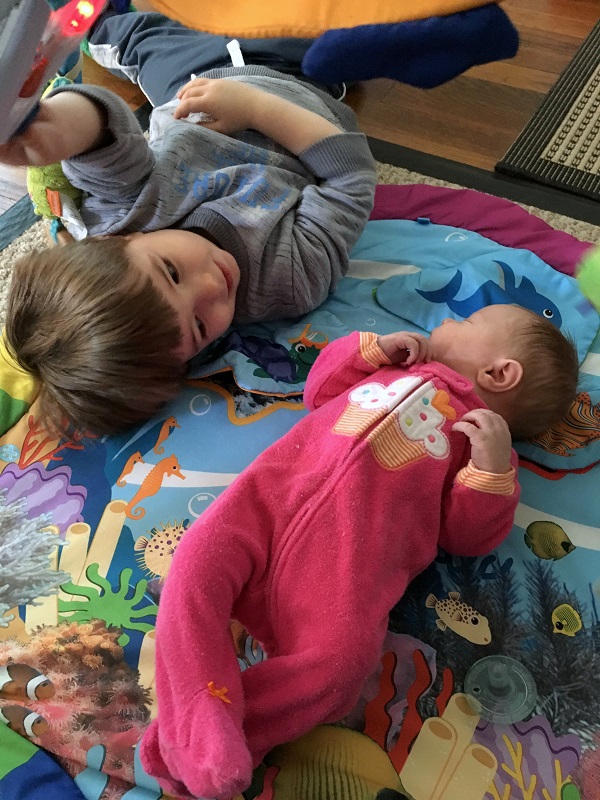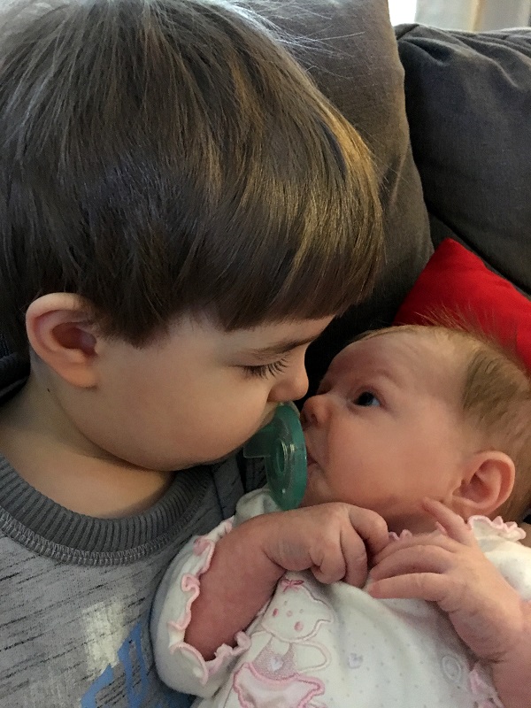 I was nervous for no reason. Everything went fine once I was on my own the following week. Marlowe is a pretty darn good baby and Jenson loves her SO much. I won’t say he’s never jealous, but he handles it pretty well. He’s going to be an amazing big brother. Boof seems to like her too. She ignored Jenson until he was 6 months old and starting to eat food, but she really keeps and eye on Marlowe. If someone is around that Boof doesn’t know that well, she just sits and watching them around Marlowe. It’s pretty amazing.