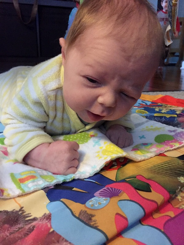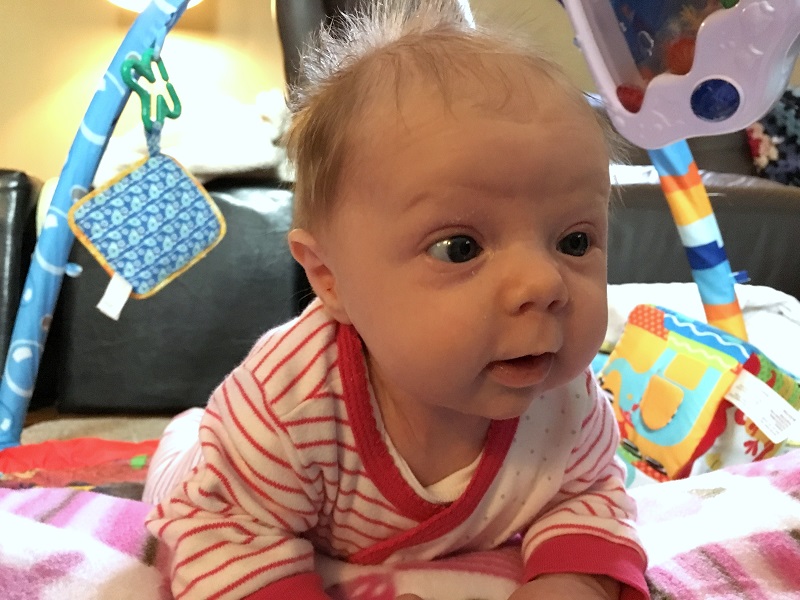 Movement: She has a super strong neck and really never bobbled that much. She didn’t love tummy time, but could lift her head well enough. We did a lot of it while we lounged back and she laid on our chests, and she did better with that. She likes to push away and look around while laying like that or while in the baby k’tan carrier.