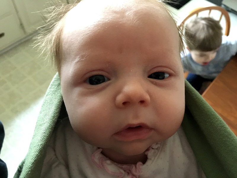 My parents left on monday and we were all on our own. It went well enough. The lactation consultant came when she was a week old. It was somewhat precautionary, but she also was struggling to latch at times. As expected, she had a tongue and lip tie like Jenson did, so we schedule to have that revised. Her first Dr. appointment wasn’t until January 6, and it was with a new doctor that is close to where we live now, and we really liked her. Marlowe weighed 7 lbs., 13.5 oz. at that appointment – still down from her 8 lb, 6 oz. birth weight, but that was expected.