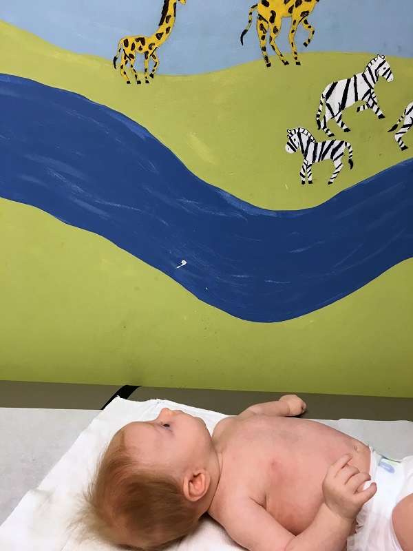 –Laying on changing table (just like Jenson), especially with her pants off