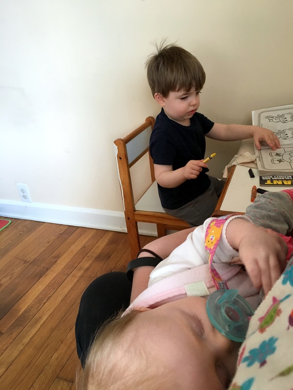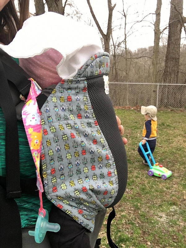 –Riding in the Kinderpack, or just being on me in some way