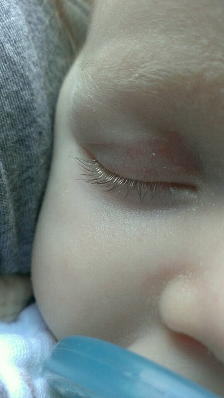 Hair: Light, baby bird hair that’s getting longer. It sticks up on top, but the sides are starting to lay down now. Everyone always thinks she has static. It’s mostly blond, but it seems to be getting a little darker and has a slight ginger tint to it, and her eyelashes are a coppery gold color (is that a color?).