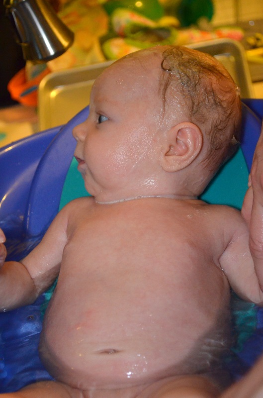 Eating: All breastmilk. She was spitting up a lot for a week or two, but that seems to have calmed down. Sometimes she’ll just stop nursing and scream, but I think she just gets a bad bubble. She doesn’t arch her back or spit up regularly, so I don’t think it’s reflux like Jenson had.