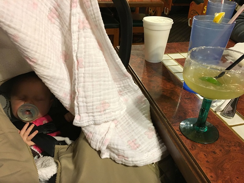 –First time dining out. We got Mexican with Lo’s mom and grandma. Mommy needed a margarita…
