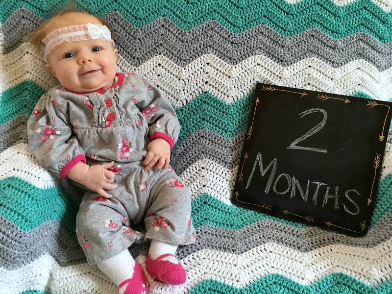 Marlowe’s 2nd month was a busy one. We took weekend trips to visit both of our families, so she met a lot of people and spent some time in the car. She did pretty well in the car, really only waking at the end of the 3 hour trip to my parent’s house.