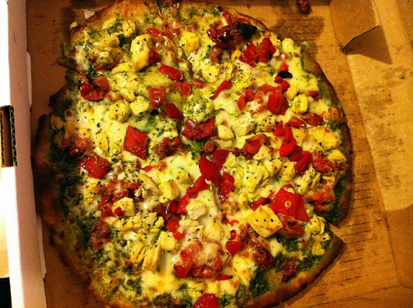 Thursday: Pizza from Buckeye Smoothie Cafe. I had heard that they had gluten-free pizzas, so I emailed and confirmed. We were right near there in Powell grocery shopping and had no plan for dinner (and wanted to watch the NFL draft and Jackets hockey game in 20 minutes), so this was an easy option. We were happy to find that the gluten-free pizza was inexpensive (the cheapest place we’ve been) and really good! It was the thinner crust, but it was still very good. And it only took them 10-15 minutes to have ready, so it’s a great quick option. We got the pepperoni and the Buckeye Bounce (pesto, chicken, sundried tomatoes, goat cheese, etc). We liked both toppings and I definitely want to get Buffalo Chicken Pizza next.