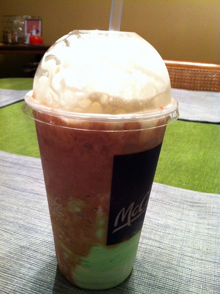A Chocolate/Shamrock Shake! I’d been wanting to try this combination because I’m not happy with the straight Shamrock shakes since they switched to the McCafe shit. I couldn’t drink it then, but I had it after volleyball and it was awesome! If your McD’s still has the Shamrock shakes, definitely ask for the mix.