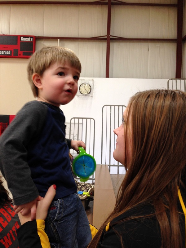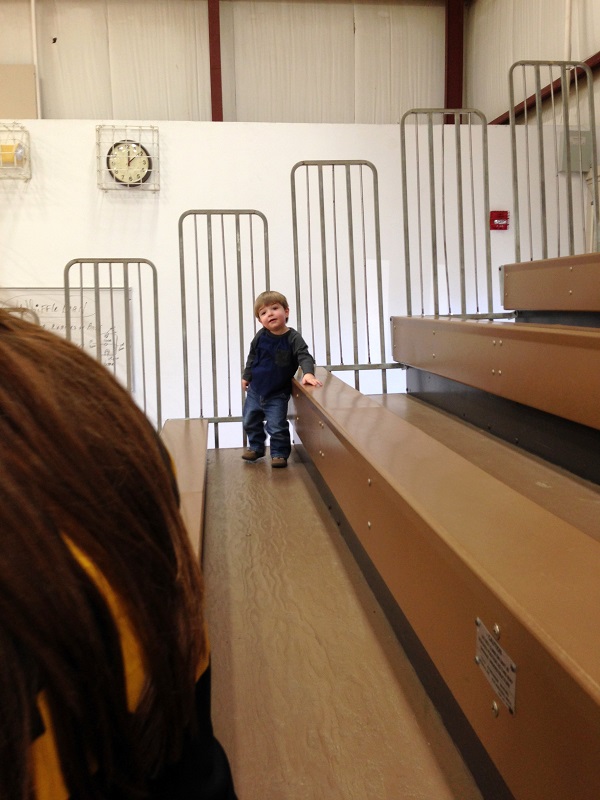 It worked out perfectly because my niece had a basketball scrimmage that we got to go see Wednesday morning. My other niece had a varsity bball game on Wednesday night, so we were able to go to that too. Jenson was obviously thrilled because these games were for EmmaLydia. He did really well considering it was a lot of sitting. We just take lots of snacks and toys and he’s pretty entertained. He was happy to be there with his aunt, uncle, and my parents too. For the varsity game, the announcer plays music pretty much anytime play isn’t going on, and Jenson was a dancing machine.