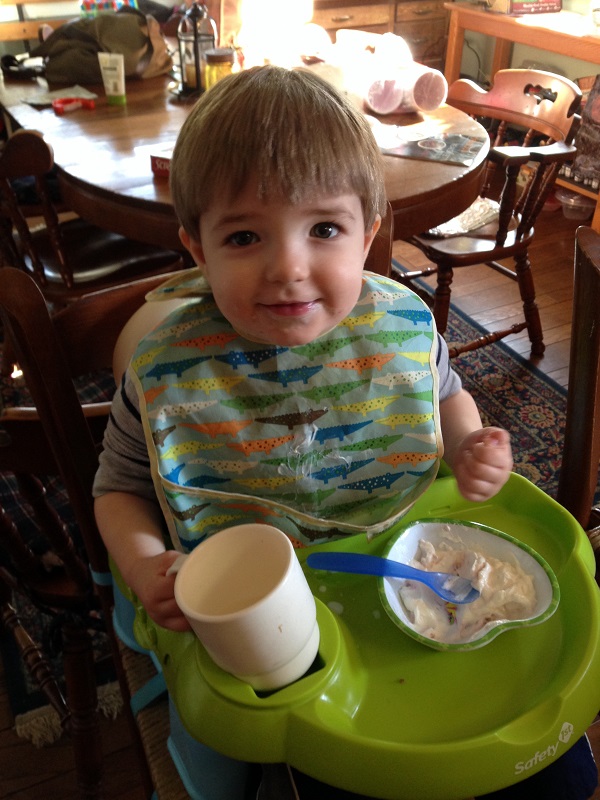 He’s doing really well with drinking out of a regular cup lately when he’s in his seat. He honestly barely spills anything. I don’t know if it’s because he used this Reflo Smart Cup for a few months, but he likes feeling like a big boy with a real cup. He’s constantly stealing my water glass and drinking out of it anyway. Everyone in this house seems to prefer drinking from “Mommy’s water”, as my glass is constantly being hijacked.