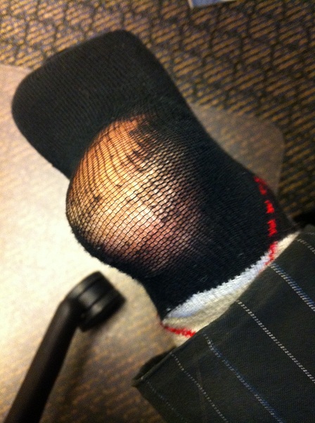My favorite work socks have been retired. I knew they were getting to the end of their life in the toe region, but I didn’t realize the heel was so bad until I could feel the shoe through them. I’ve had them for years and they were always the first I’d grab from my drawer when they were clean. The other one was just as bad. I’m sorry to see them go. I know you care.