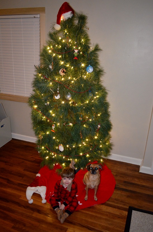Eventually the star made it on top of the tree to replace the Santa hat, but these two are cute anyway. Boof poses so well for pictures.